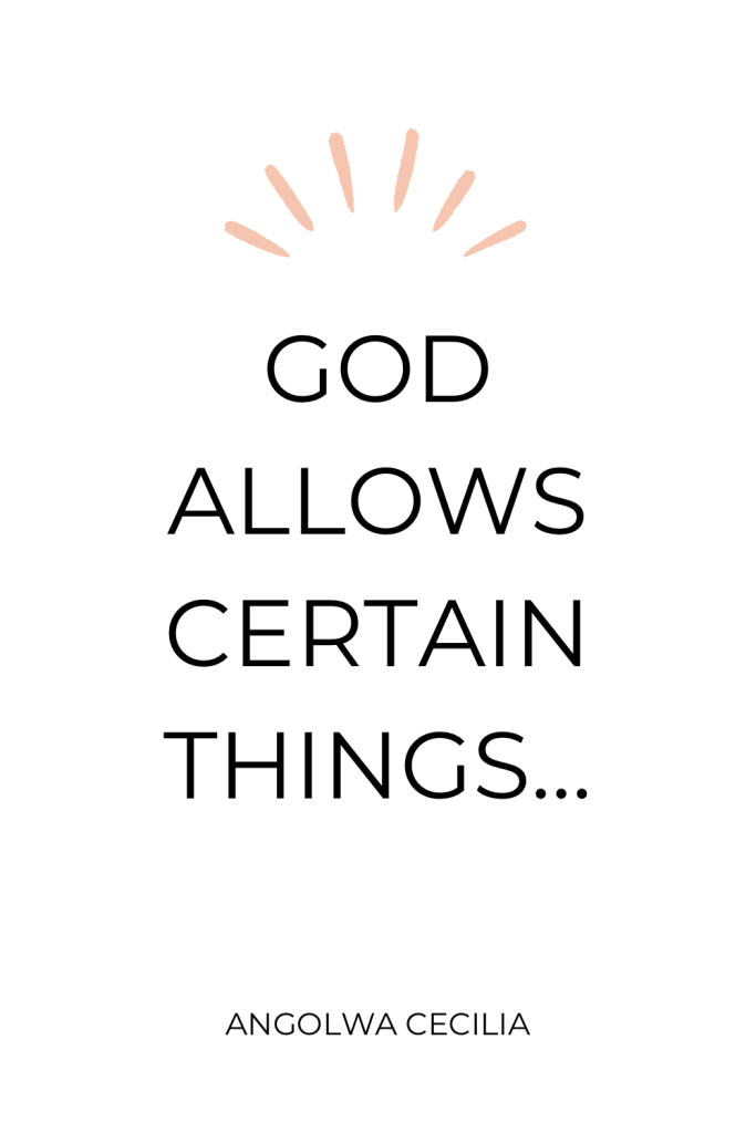 This led me to think of a story I read from a book by Rev James A Solomon, deliverance from demonic covenants and curses. You can grab it on Amazon. The story is of a man who lost his wife and the man was angry at God for this. Long story short, God showed the man that there are some things God does to bring us to a place where He desires.