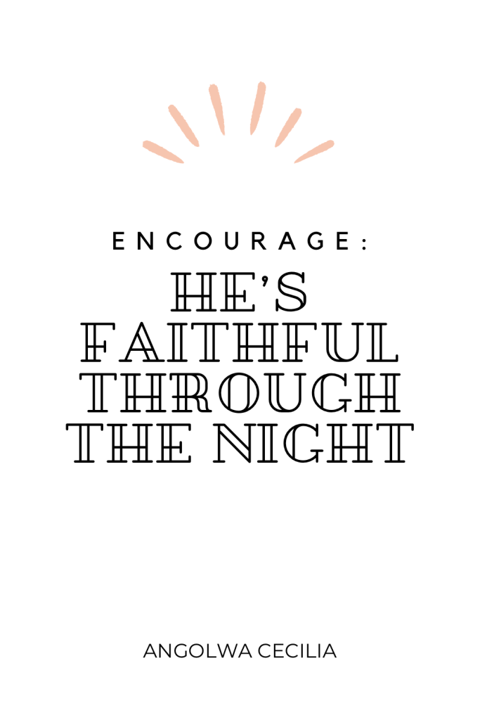 I then started praying then a revelation came forth, that my GOD, your GOD is faithful GOD through the night. I always thought to myself that night was literally night, but He revealed so lightly yet wonderfully that I finally understood what the verse meant.