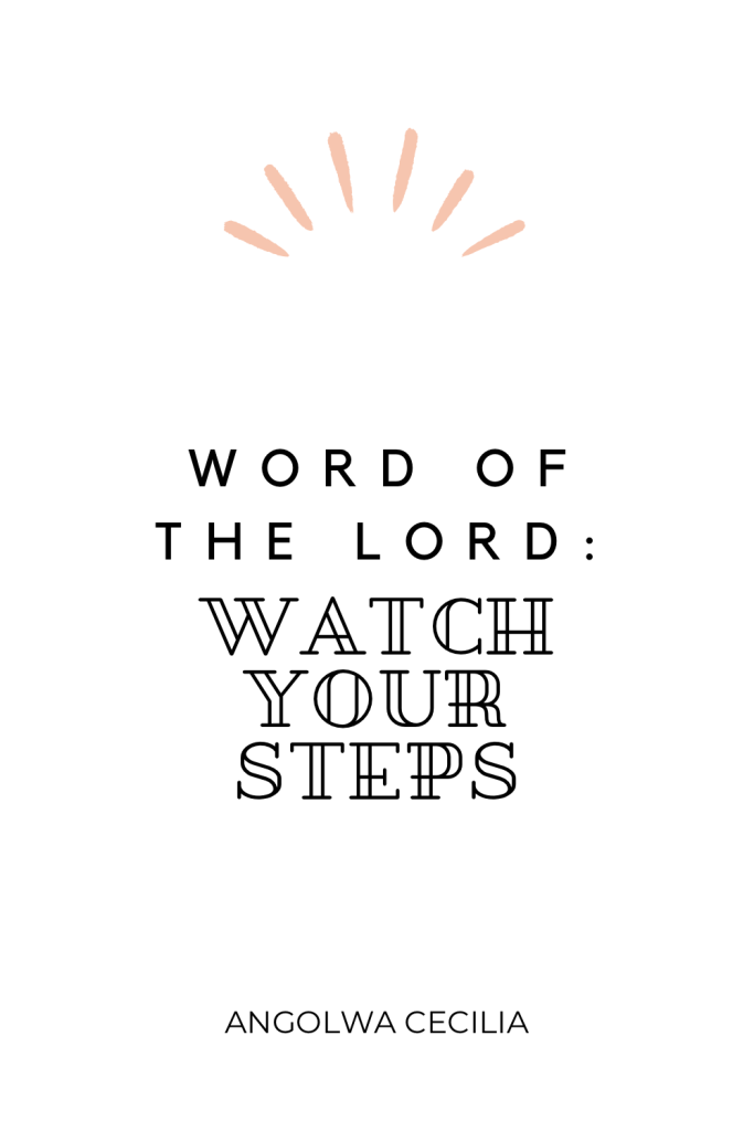 In the name of the Lord Jesus, This is what the LORD says this day: My children My children, today is the day the LORD has made and we shall Rejoice and be glad in it. Therefore this is what the Lord says this day: Be aware of your steps, be aware of my doing for the LORD is watching your steps. Be aware of your steps, This is not to scare you but to warn you because the LORD is watching your steps. Serve me your God, for I the LORD desire a humble heart, and willing spirit to do my will! Therefore walk in my will! Walk in my will! Therefore know this: The LORD is watching your steps and if you make the wrong steps, you will face the consequences of your actions! Bless be the name of the LORD! Hallelujah!