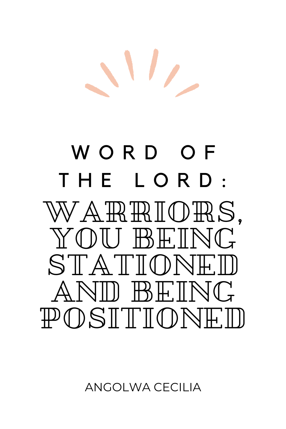 Warriors be ready for I am positioning you to spread into position. So therefore know that I the LORD know what is going on around the earth and the LORD is positioning you in the nation so that what is to come will come but you will be stationed to conduct the affairs where you are located, warriors you are strong, you are capable, and you are able to do more in Christ Jesus. Therefore, I am sending you forth! Go, and be stationed! Hallelujah.