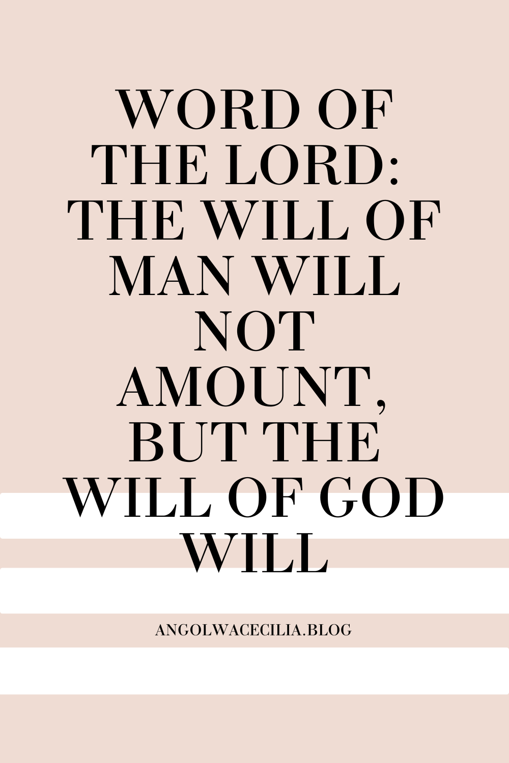 The LORD has been mentioned to me briefly about His will versus man’s will. So the LORD said this, as you can see from the title: The will of man will not amount, but the will of GOD will. From these bible verses, as well, you can already determine whose purpose will prevail. The plans of a man is not going to amount because it is the LORD who has the final say.